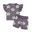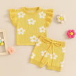 Designed for comfort, cuteness, and carefree play, this outfit features a ruffled cotton top with a charming floral print and matching elastic waist shorts—perfect for summer fun, family outings, or just lounging in sweet style.