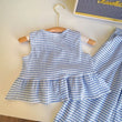 Girls Striped Summer 2-Piece Set – Cute O-Neck Top & Shorts Outfit (7–12Y)