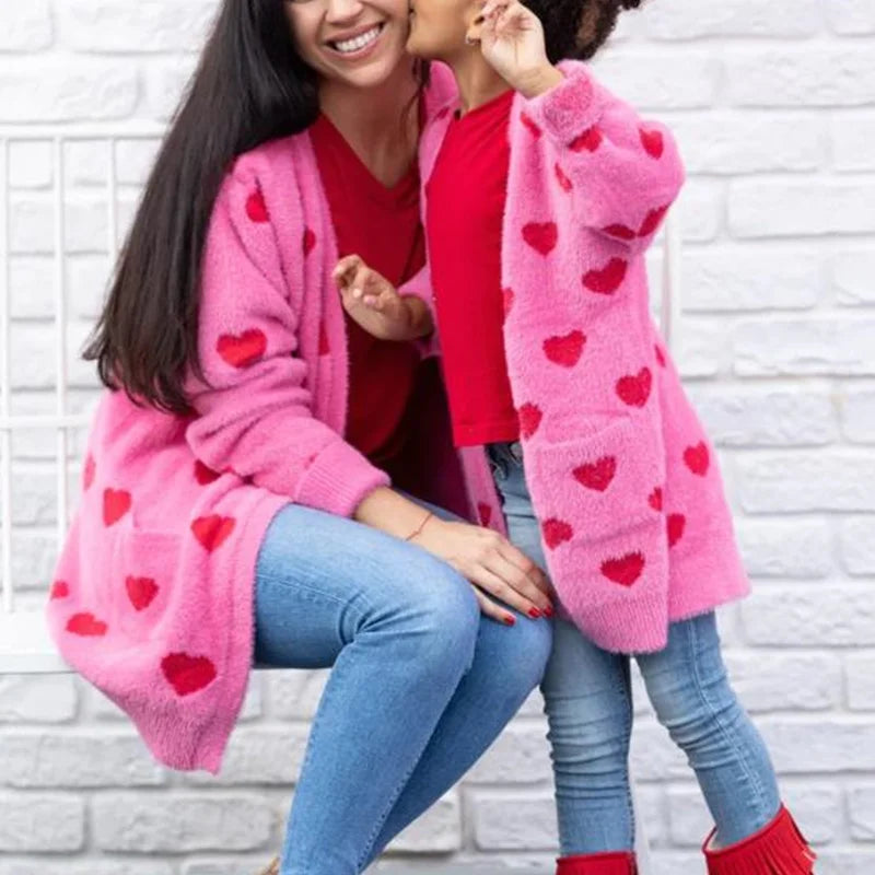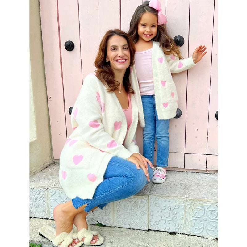 Matching Heart Knit Cardigan Set