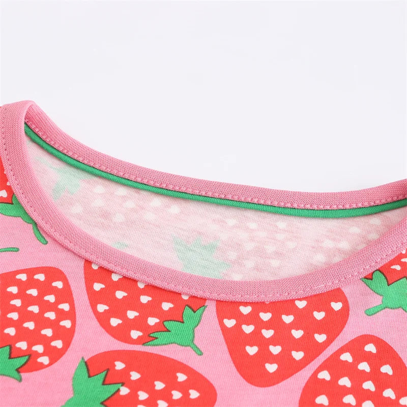 Crafted from a soft, breathable cotton-polyester blend, this charming frock is gentle on delicate skin while standing up to all the twirling, running, and playing she loves. The playful strawberry print brings a pop of cheerful color, perfect for picnics, playdates, or birthday celebrations.